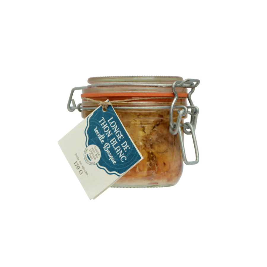 Notre conserve de Thon à la Basquaise est fabriqué avec du thon blanc sélectionné et acheté entier par nos soins à la criée de Saint-Jean-de-Luz.