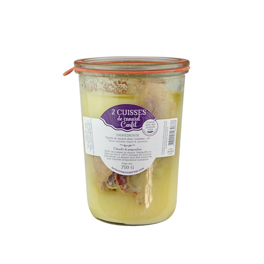 1 x bocal de 2 cuisses de canard confit (750g) : Nous vous proposons un vrai confit de canard, dans la plus pure tradition du Sud-Ouest,