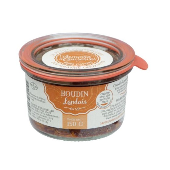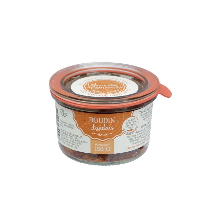 1 x bocal de Boudin Landais (150g): Une recette de famille où les épices sont présentes sans pour autant tuer le goût du boudin.